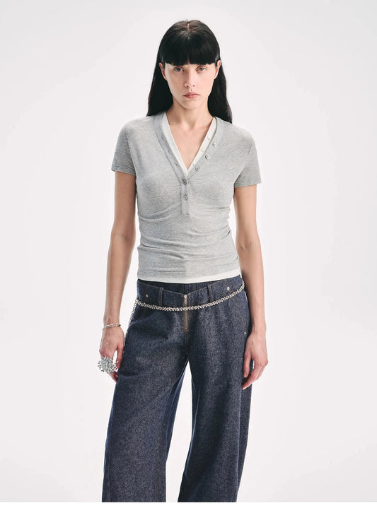 Fireladyfur Brand Slim Fit Tencel Wool Women'S Slim Fit Henley T-Shirts Short/Long Sleeve V-Neck Button Knitted Bottoming Basic Tops"Pure Fashion"